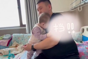 女儿趴爸爸肩头哭,爸爸一动不敢动